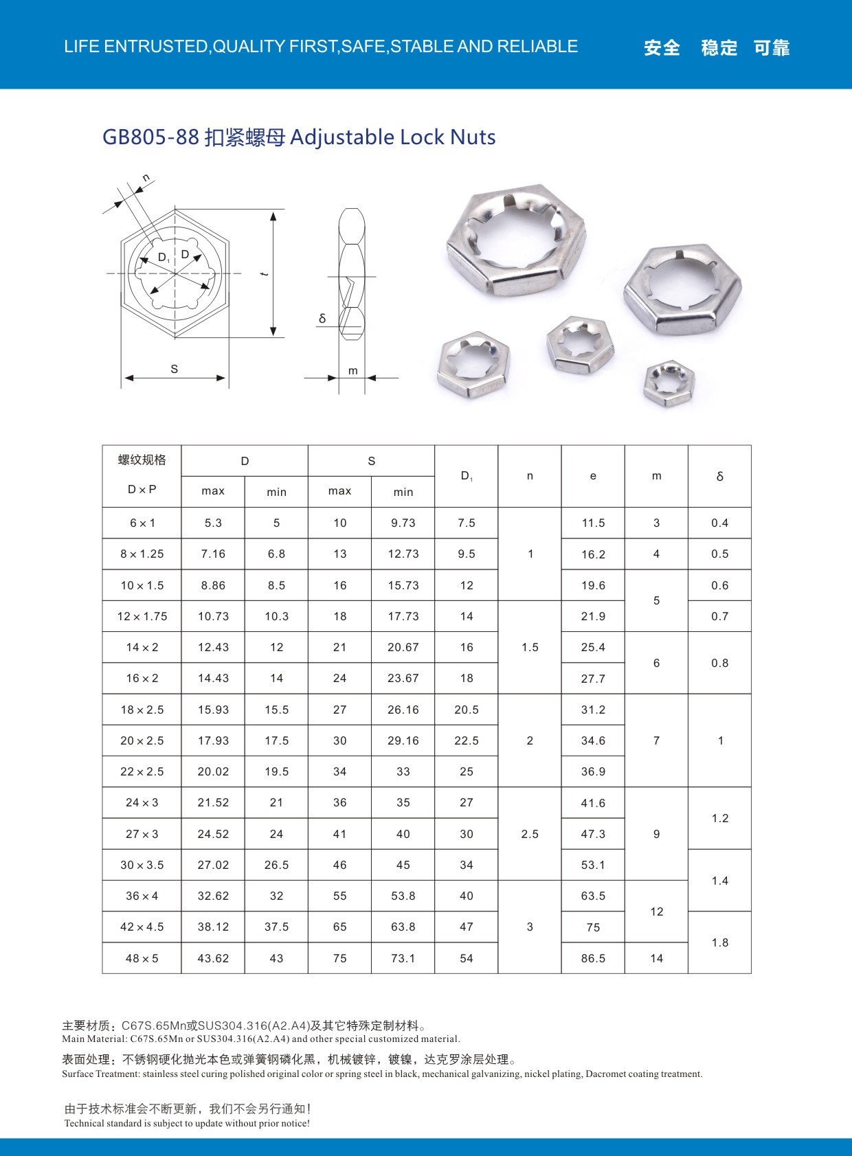 國標GB805扣緊螺母,使用65MN彈簧鋼材質(zhì),全硬化鍍鋅除氫處理,常規(guī)品M4-M48現(xiàn)貨齊全!歡迎索樣咨詢!